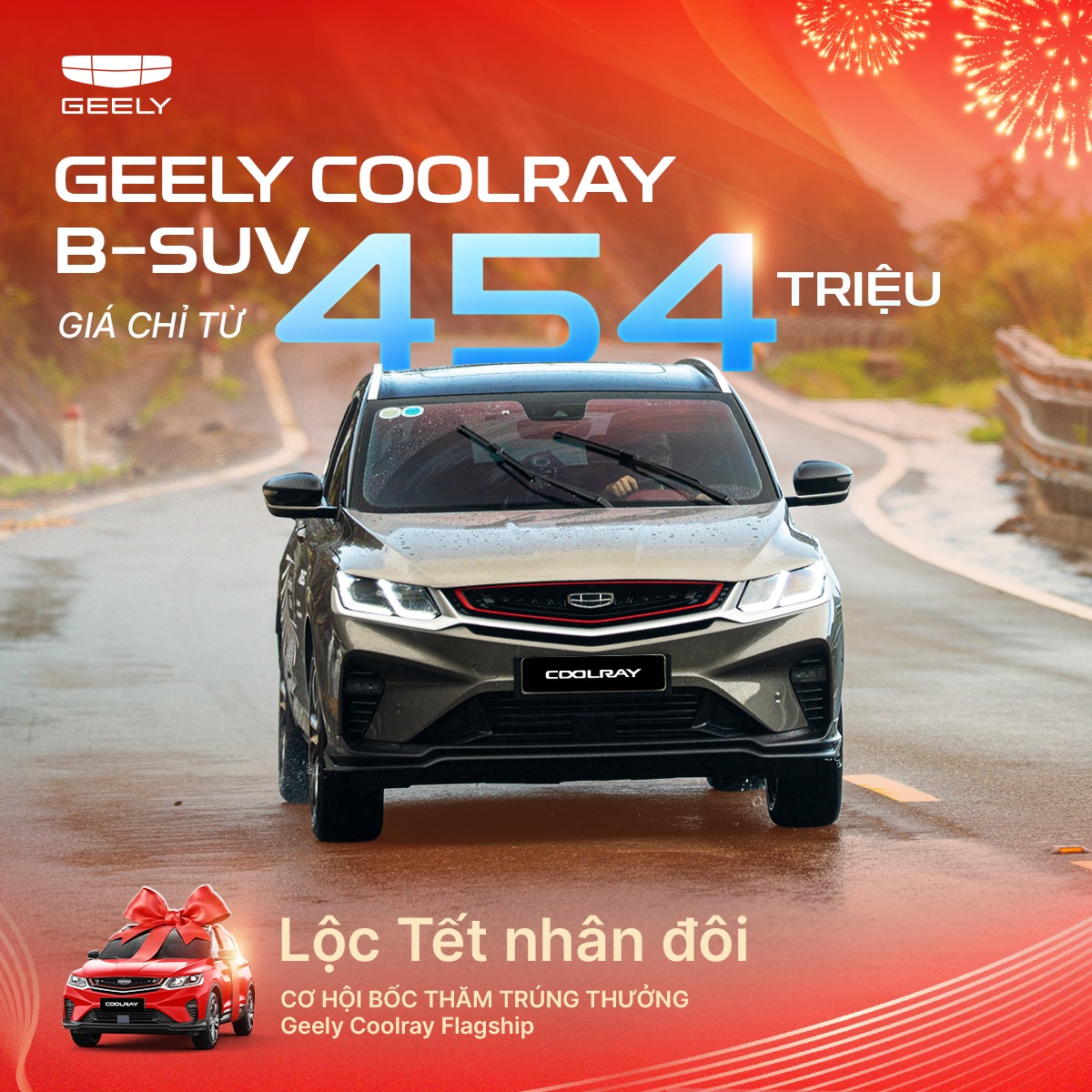 Khi mua xe trong dịp Tết này, khách hàng còn có cơ hội bốc thăm trúng thưởng chiếc Geely Coolray Flagship – Phần quà giá trị thay lời tri ân đầu năm từ Geely Việt Nam.